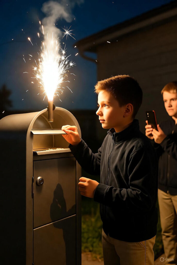 En borger ringede til politiet, da en dreng smed kanonslag i en postkasse på Helligkorsvej, mens en anden dreng filmede det. Politiet fik signalementet af de to drenge og kørte en tur i området, hvor de så to drenge løbe ned ad Elmegade i retning mod byen. En hundepatrulje stoppede de to drenge i Støden, hvor de blev tilbageholdt.