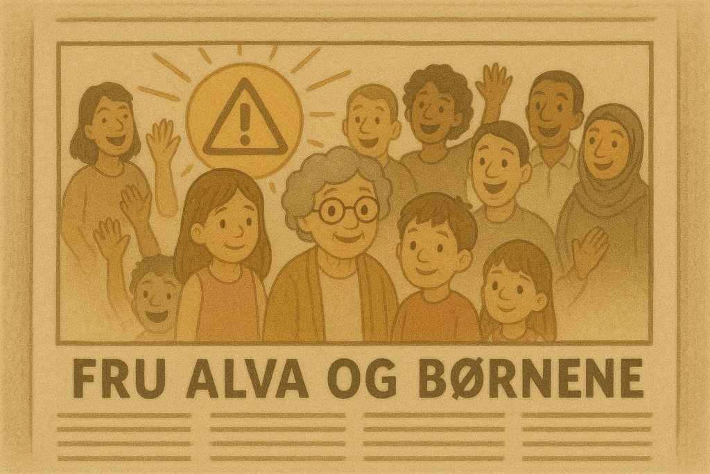 Fru Alva, en venlig 61-årig kvinde, gik en tur i solen. Hun smilede til blomsterne og nikkede til spurvene i træerne.